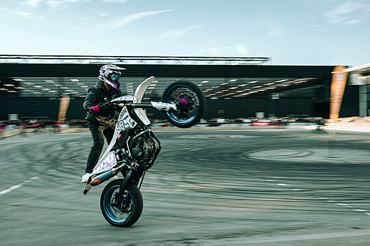 Für zusätzliche Adrenalinschübe sorgten die Pop-up Shows von Masters of Dirt im Innenhof. Als exklusiver Vorgeschmack auf den Salzburg-Stopp der großen Tour brachte Masters of Dirt internationale Freestyle-Motocross- und Quad-Action direkt auf das Gelände der Customized. Spektakuläre Sprünge, starke Athleten und die unverwechselbare Energie der Marke machten diese Programmpunkte zu publikumsstarken Highlights des Wochenendes, die gezielt in das Gesamtprogramm eingebettet waren.